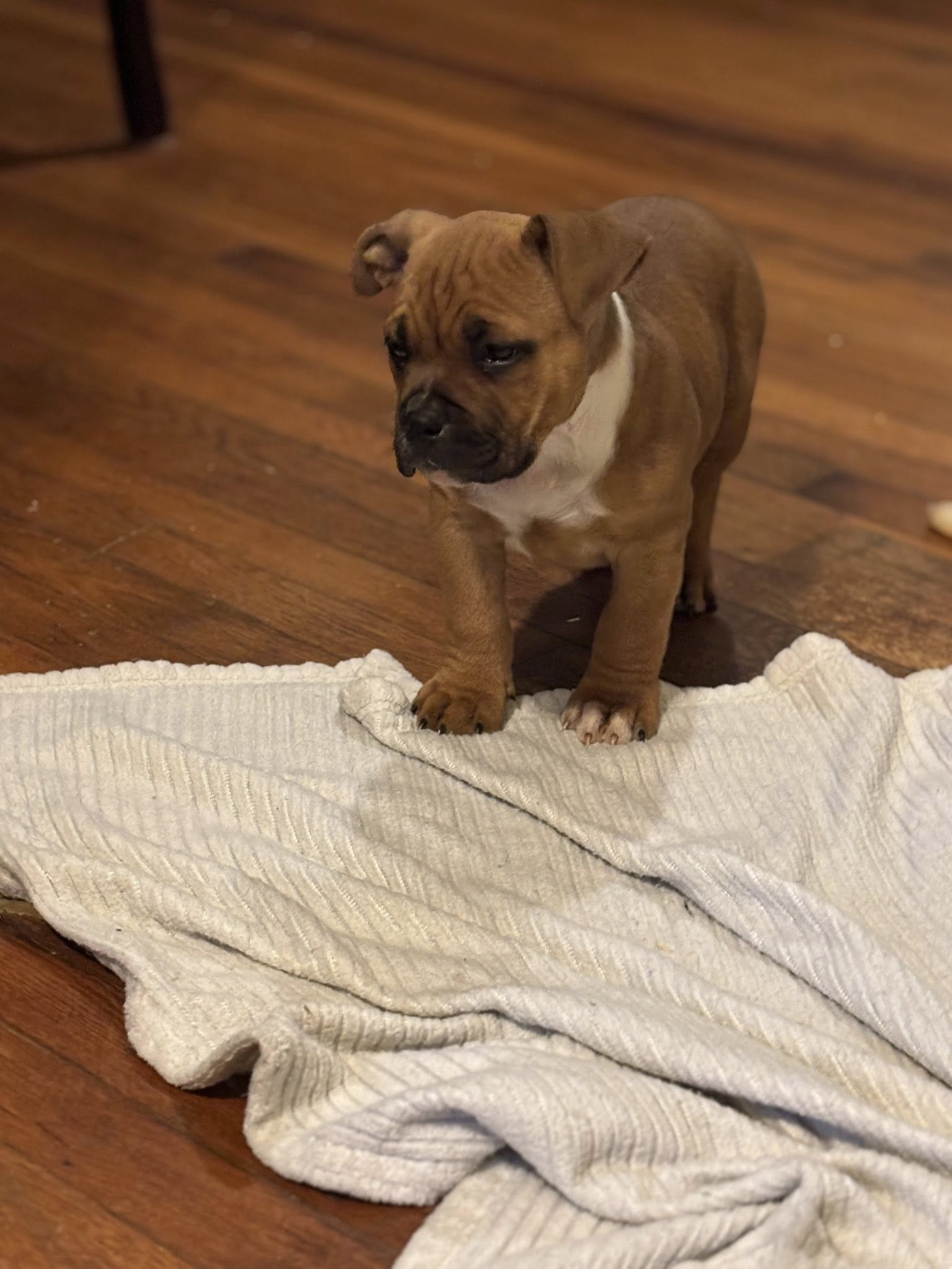 I’m a confident, stocky puppy with a rich brown-and-white coat and a calm, thoughtful personality. I like to take my time observing the world around me, but once I’m comfortable, my sweet and affectionate side shines through. I’m being well cared for right now, but I’m ready for a forever home where I can feel safe, loved, and grow into the loyal companion I’m meant to be. Come meet me and see if we’re the perfect match—just ask for Joy! 🐶🤍